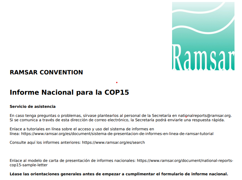 • El Ministerio asegura que entre las principales dificultades surgidas en la aplicación de la Convención desde la COP14 están el asegurar la participación de todos los interesados en el manejo de los humedales impactadas por las nuevas dinámicas de trabajo postpandemia COVID-19; la necesidad del fortalecimiento del personal encargado de la gestión sustentable de los humedales ya que se ha visto disminuido en un contexto donde las sanciones dificultan el acceso al financiamiento, y que el acceso a los fondos es limitado.