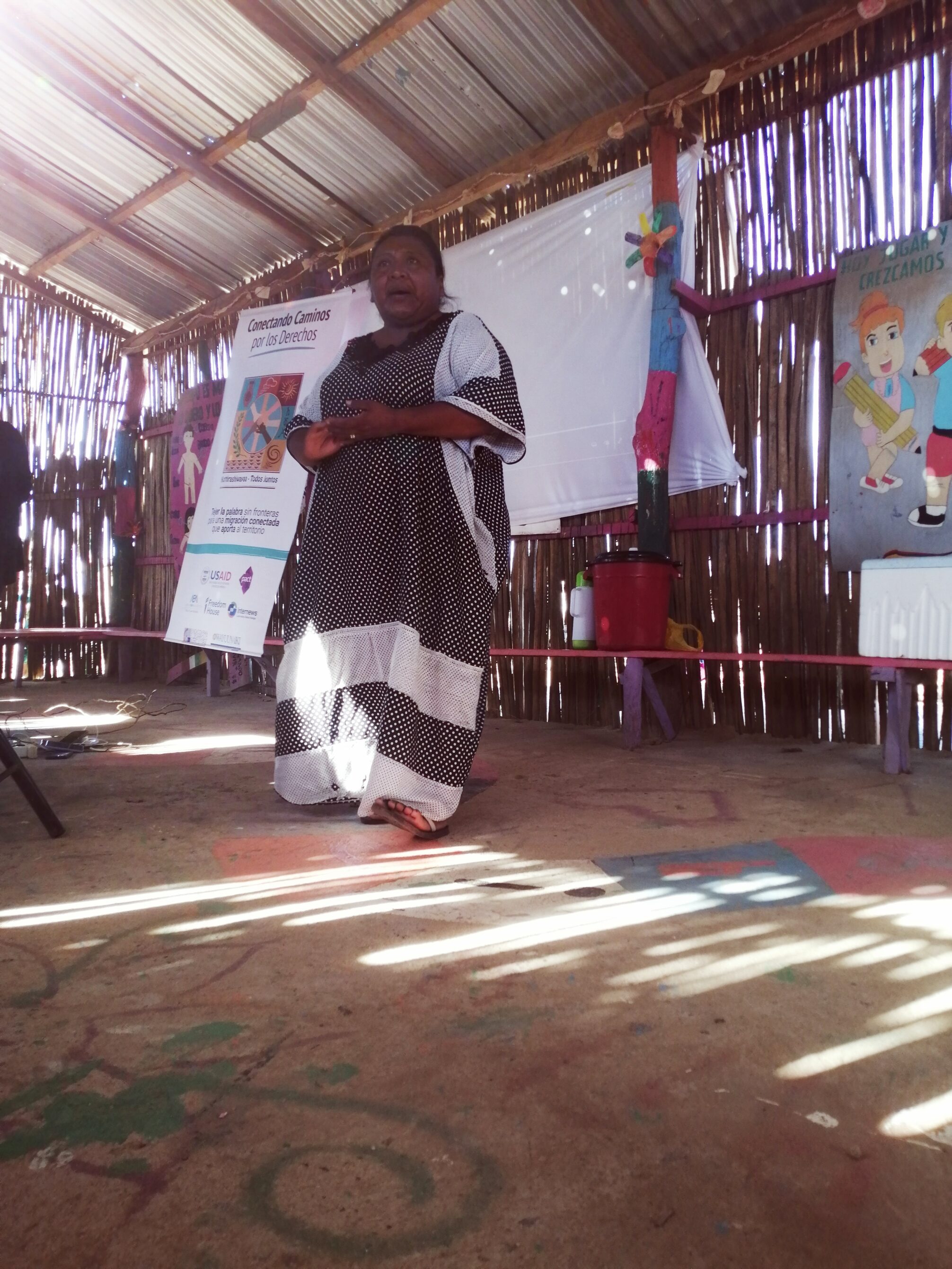 Ella, también, comenzó a capacitarse en temas de comunicación, Derechos Humanos y liderazgo: labor que ya ejercía de manera innata, empírica. Cumpliendo el principio wayuu, también, de la maternidad sin haber podido gestar vida: amorosamente, cuidaba (y cuida) a una comunidad entera.