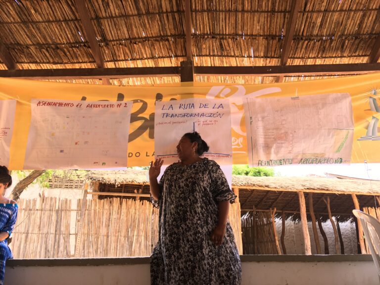Junto con otras mujeres wayuu y venezolanas alijunas -no wayuu, en lengua wayuunaiki- invadió el terreno de lo que en algún momento fue el aeropuerto de Uribia. Asentamiento Aeropuerto bautizaron el espacio que, con el tiempo y las cientos de familias migrantes venezolanas, distribuyeron en etapas: en esta labor, Nancy tomó la iniciativa. Organizó a las mujeres e hicieron un censo, a bolígrafo y en hojas blancas, de cada una de las familias y persona. Caminaron la trilla, bajo el sol por horas; pero, lograron su objetivo: la caracterización de la comunidad. Luego, decidieron, en consenso, clasificar el Asentamiento en cinco etapas.